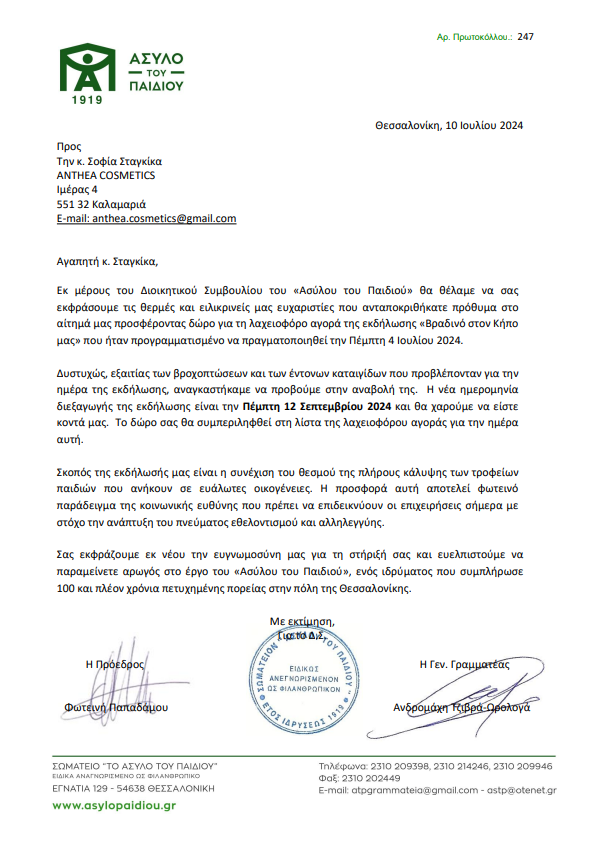 Με μεγάλη μας χαρά προσφέραμε προϊόντα Anthea Cosmetics για το μπαζάρ της "Στοργής", που προσφέρει τόσο μεγάλο έργο!
